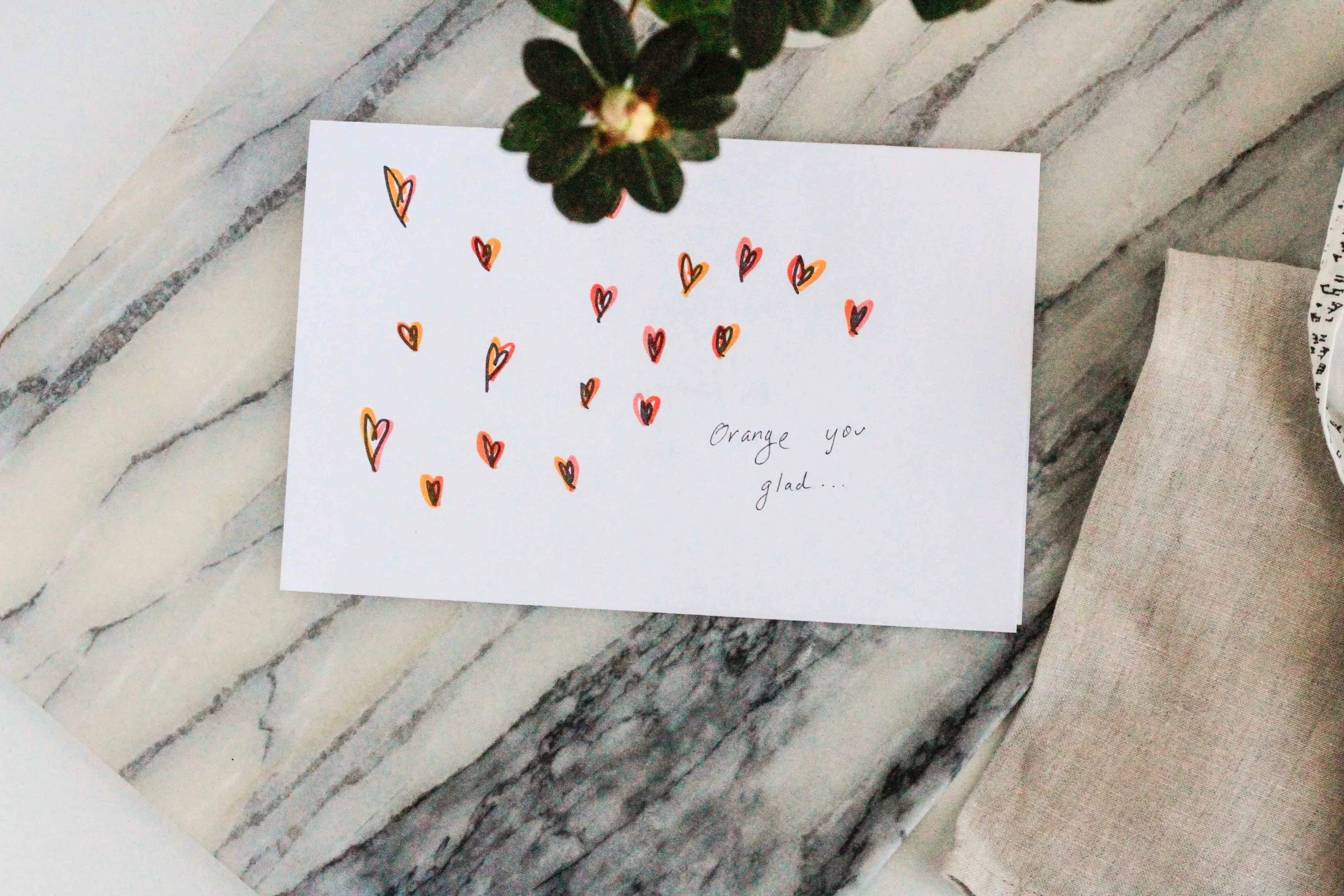 And since it's Valentine's Day, what goes better with flowers and orange cream cheese rolls than a handwritten card? I created a simple, heart-patterned design that you can use/customize for anyone you'd like to give it to. Download the card and find the full recipe for the rolls below!