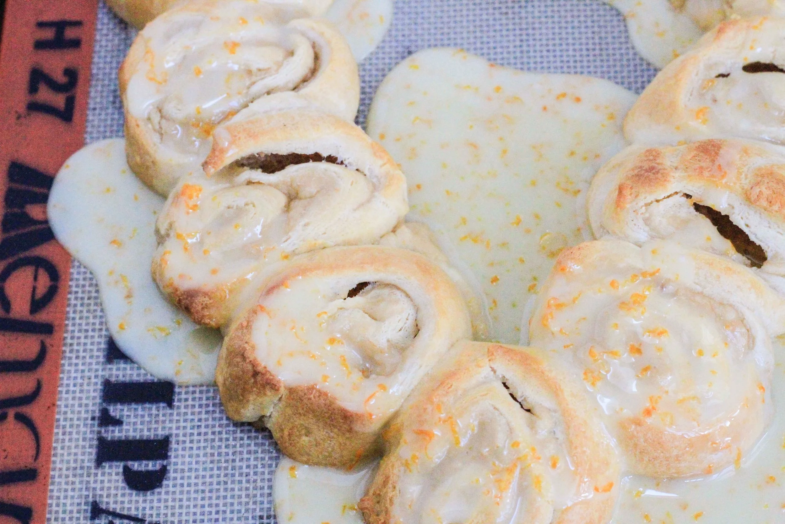 Once the rolls are removed from the oven, drizzle the orange glaze over all of the rolls. Enjoy warm.
