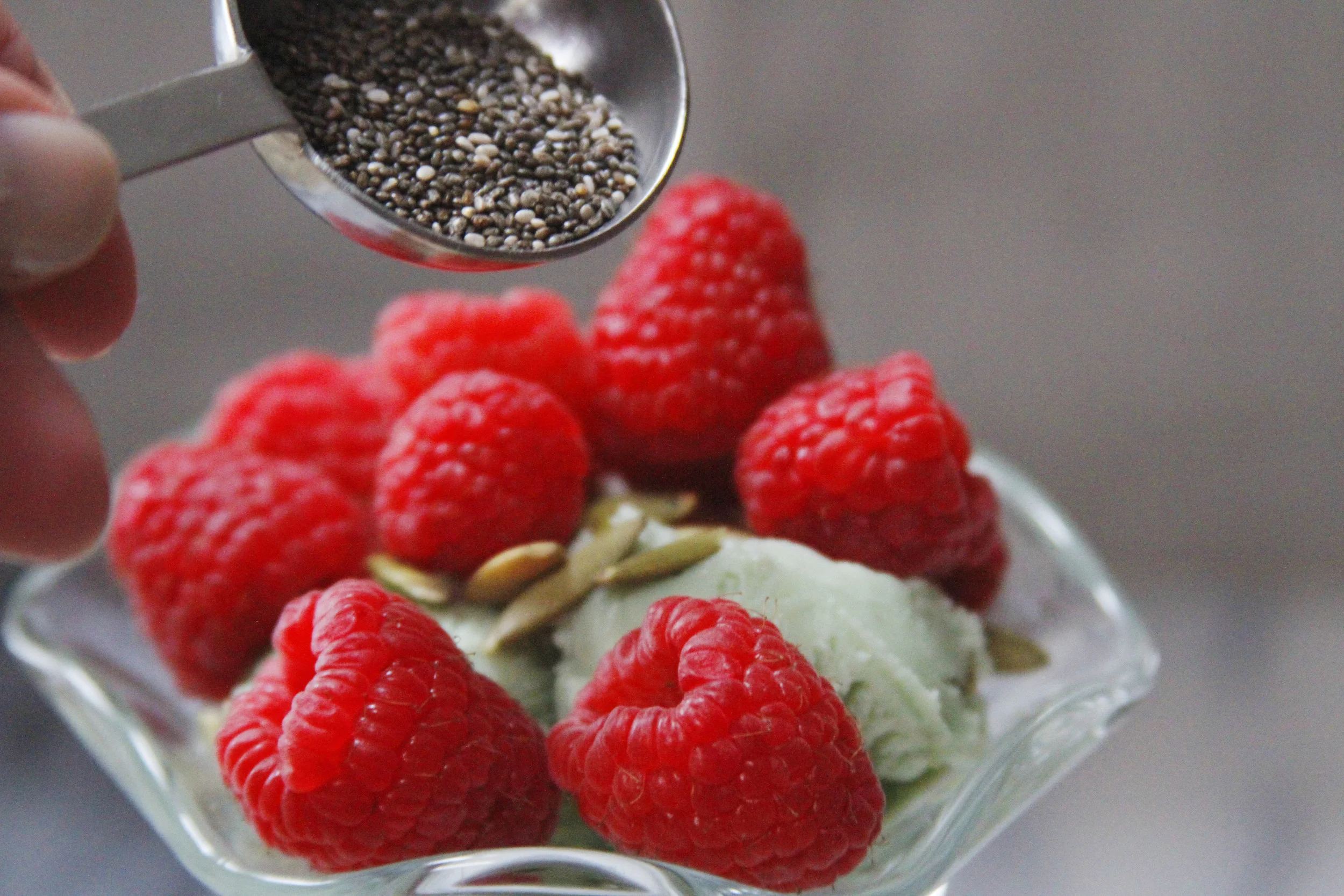 This is the funky part, chia seeds! I love how they mimic the texture of raspberry seeds + they provide a bit of crunch. 1/4 a tablespoon of these is good.